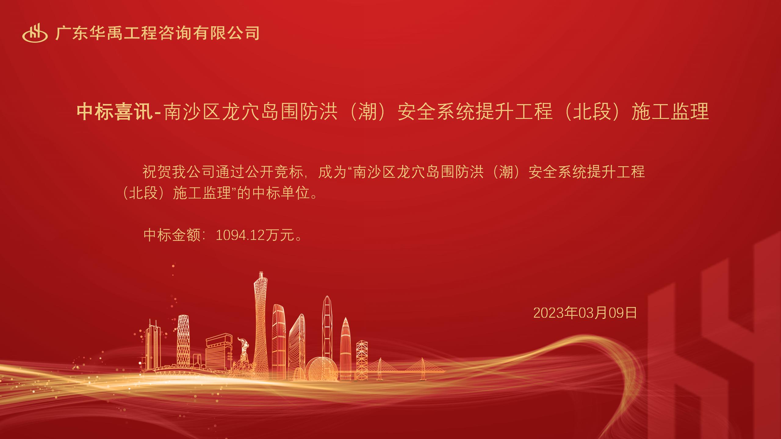 中标喜讯 - 南沙区龙穴岛围防洪(潮)安全系统提升工程(北段)施工监理