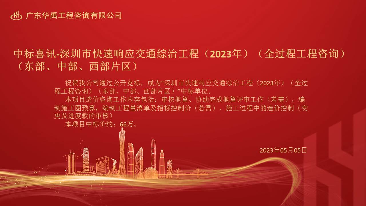 中标喜讯 - 深圳市快速响应交通综治工程 (2023年) (全过程工程咨询)(东部、中部、西部片区)