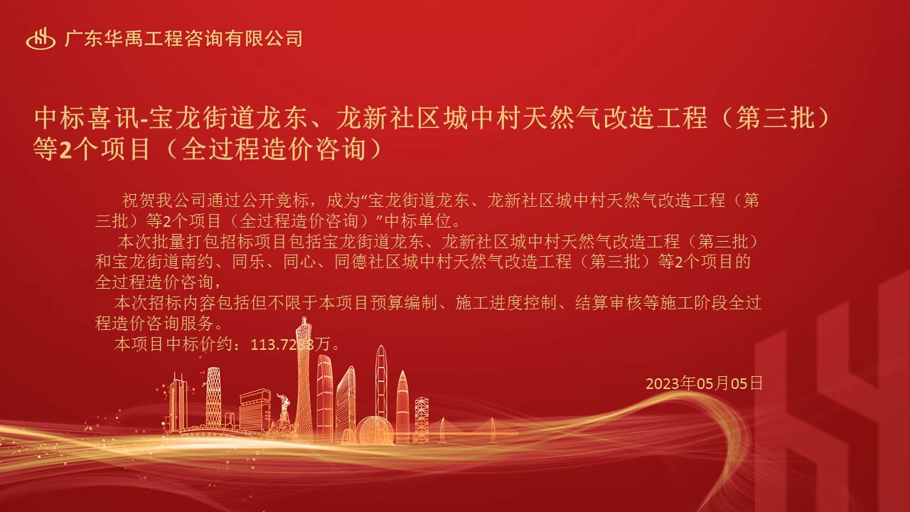 中标喜讯 - 宝龙街道龙东、龙新社区城中村天然气改造工程 (第三批)等2个项目 (全过程造价咨询)