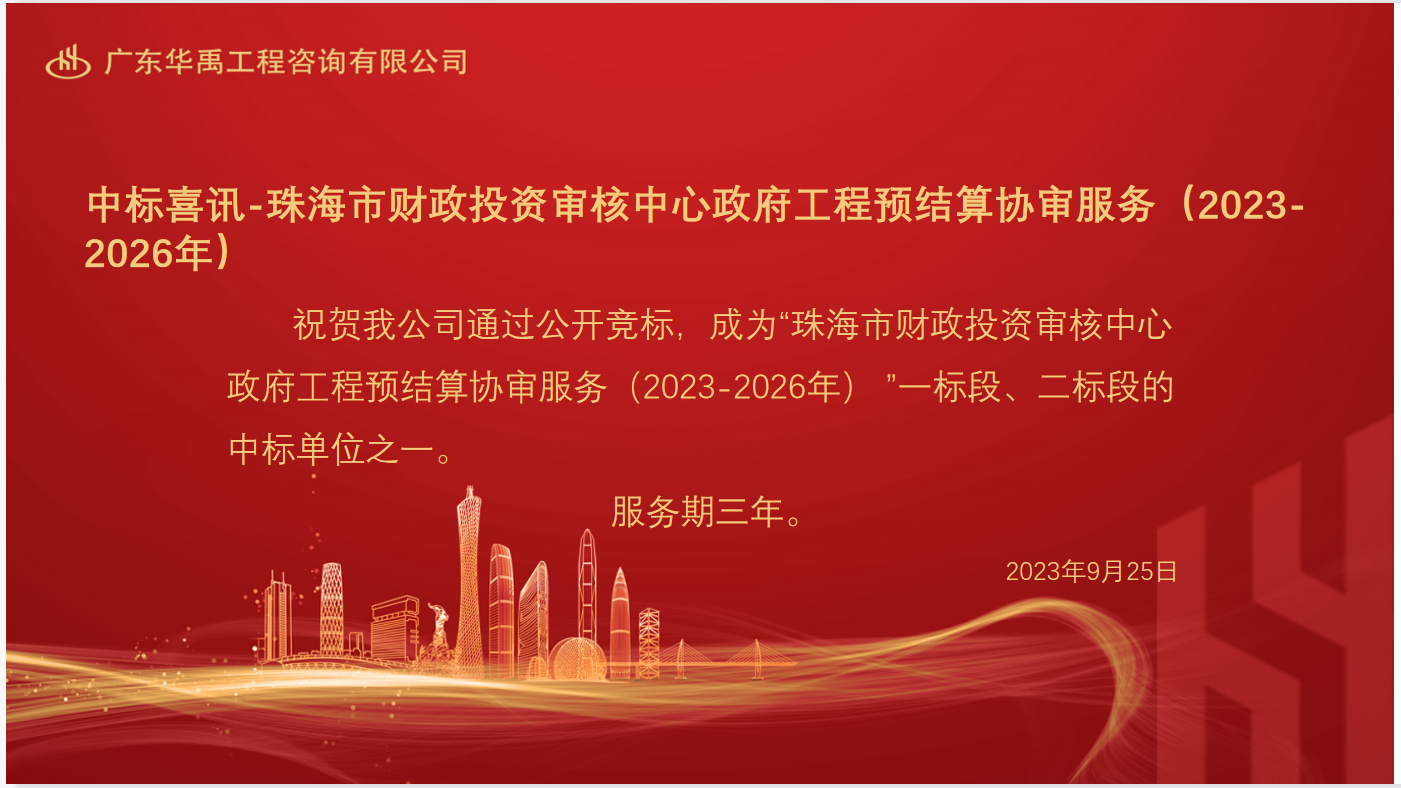 中标喜讯-珠海市财政投资审核中心政府工程预结算协审服务(2023-2026年)