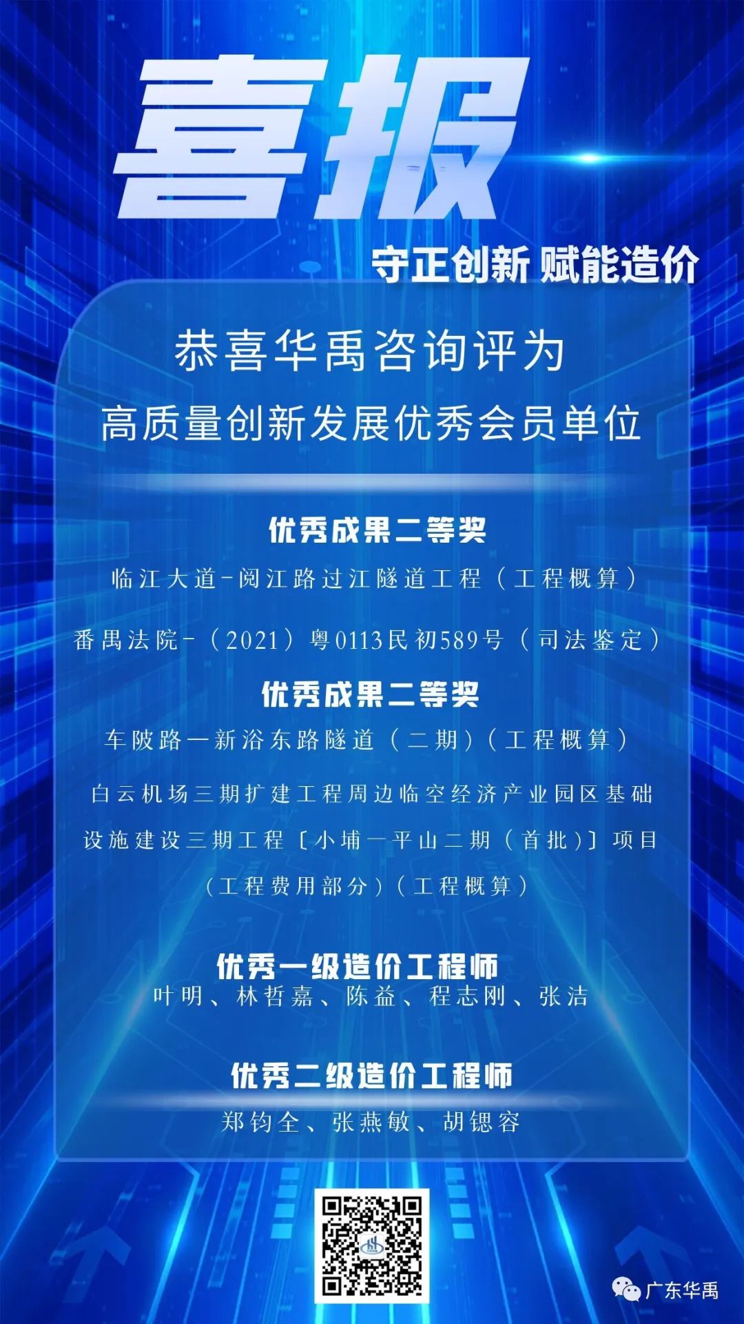 10月23日,广州市工程造价行业协会发布“守正创 新赋能造价”2023年度广州市高质量创新发展评优活动获奖名单,华禹咨询被评为“优秀会员单位”、所属4个工程项目获得“创新优秀成果奖”,5人评为优秀一级造价工程师,3人评为优秀二级造价工程师。