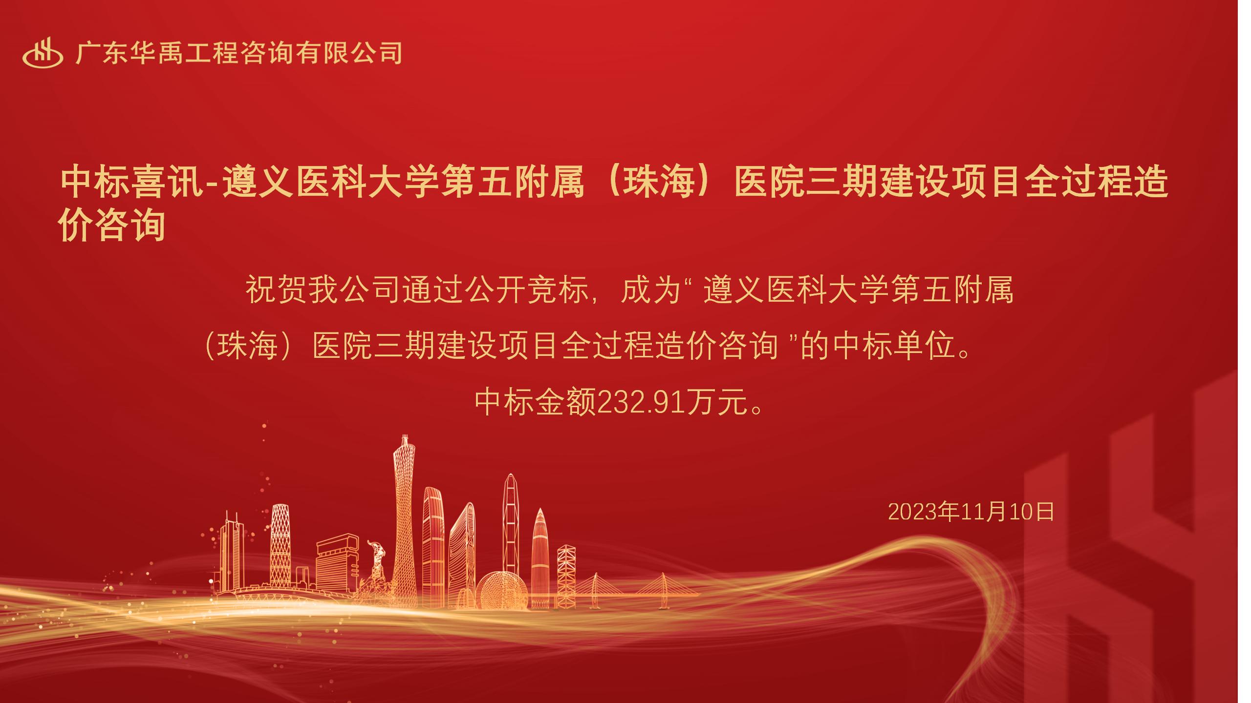 中标喜讯 - 遵义医科大学第五附属(珠海)医院三期建设项目全过程造价咨询