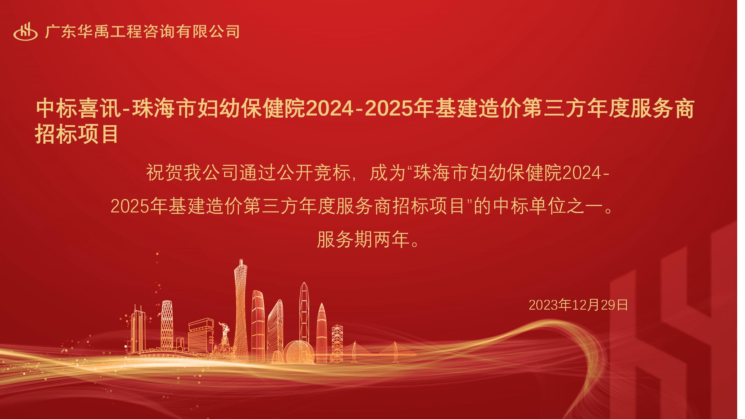 中标喜讯-珠海市妇幼保健院2024-2025年基建造价第三方年度服务商招标项目