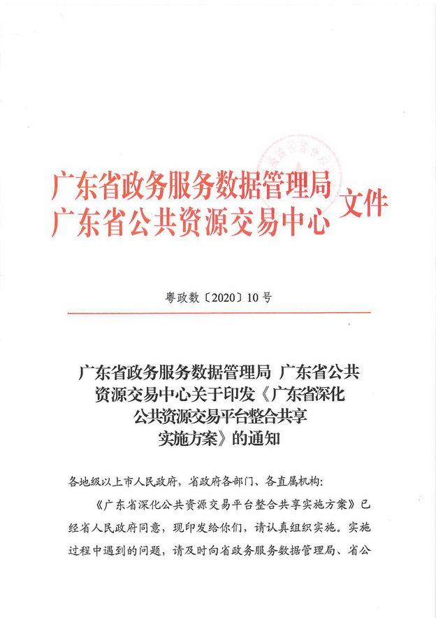 关于印发《广东省深化公共资源交易平台整合共享实施方案》的通知